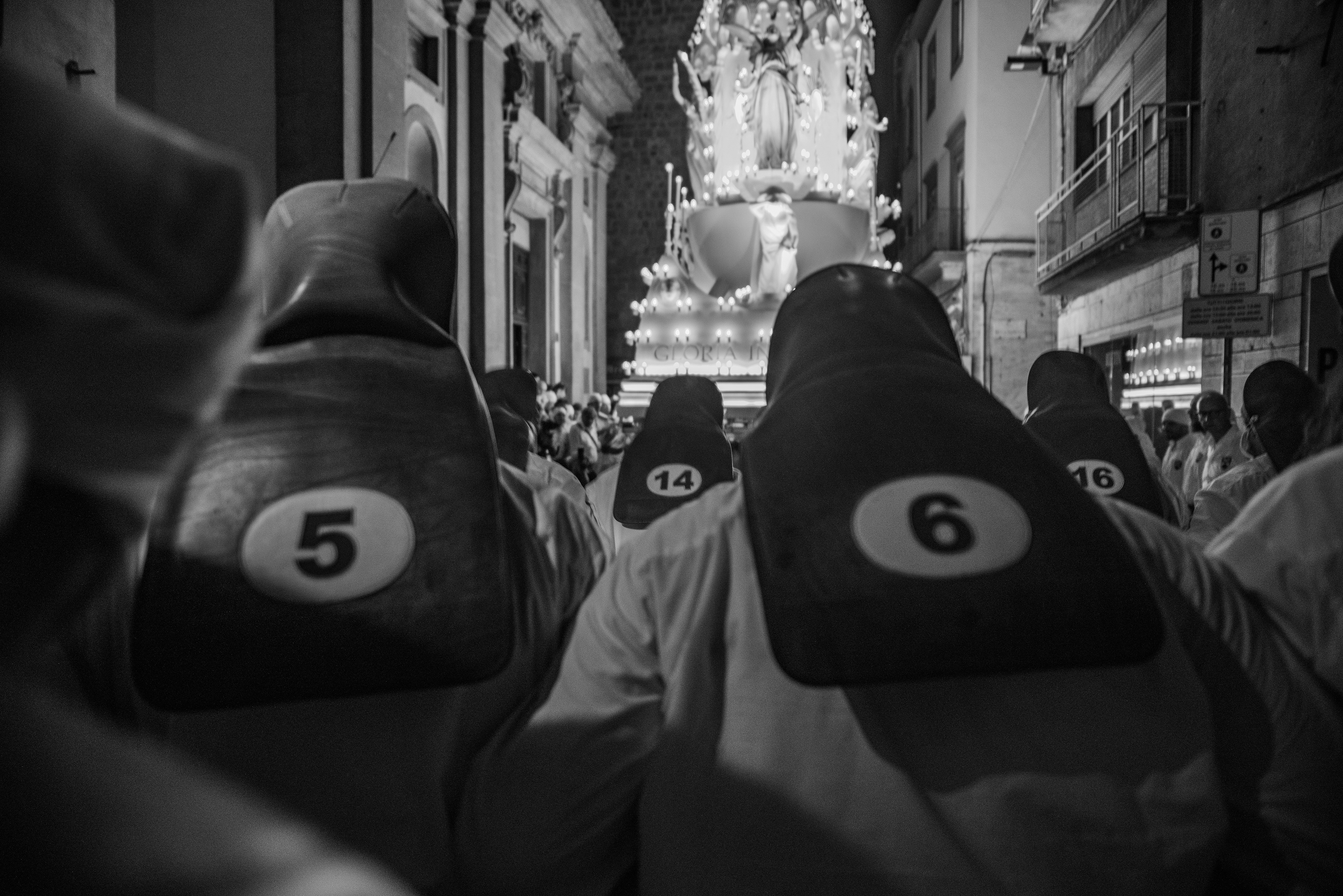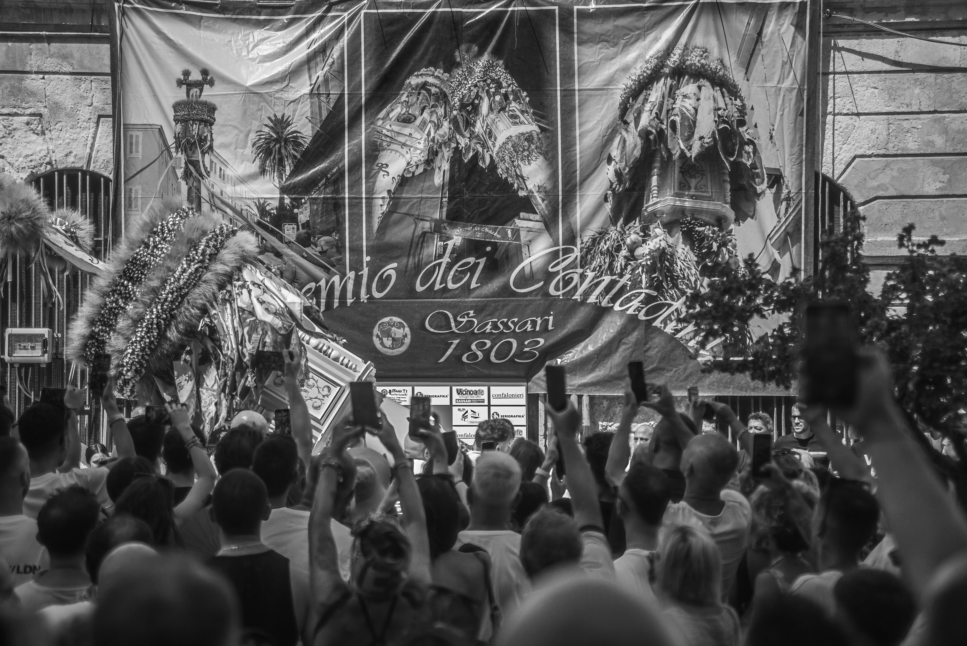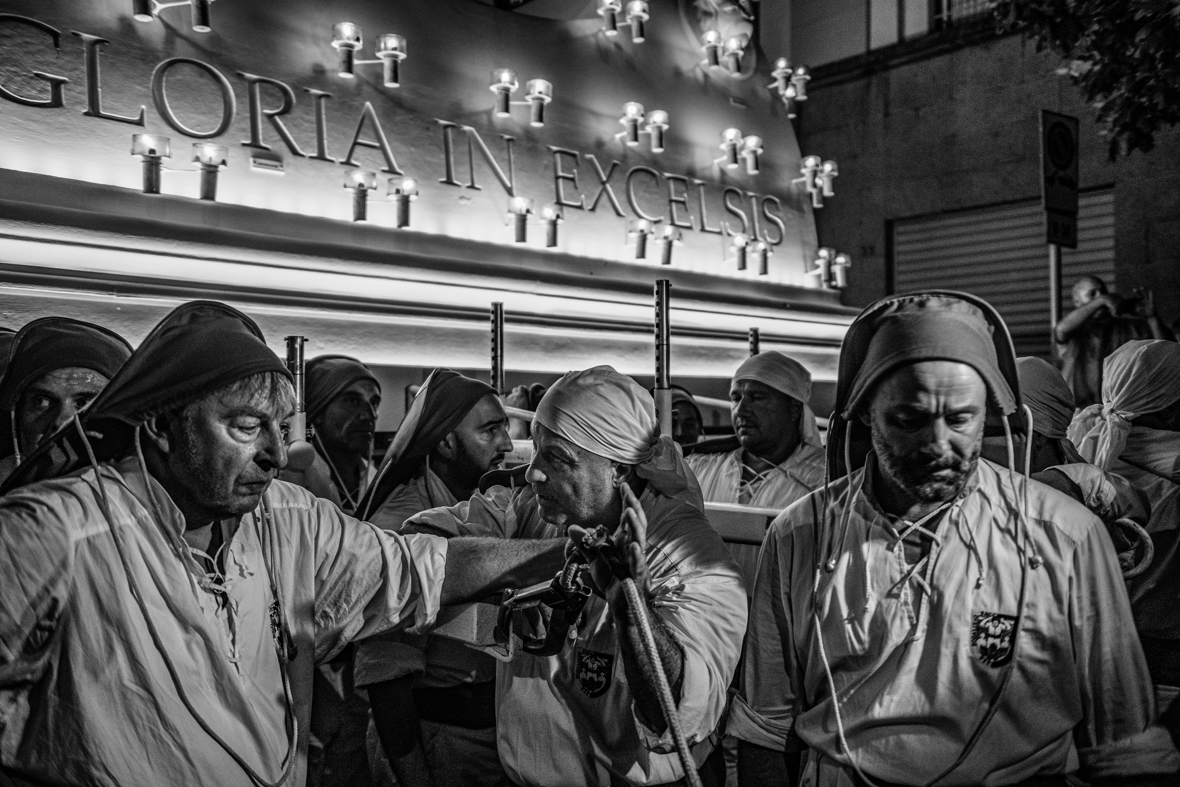 Every year on August 14th the city of Sassari celebrates the Faradda dei Candelieri, an ancient procession where large wooden structures are carried through the streets by members of the historic guilds.Rather than observing from a distance, I work inside the movement of the festival, among the porters and the crowd. My aim is to capture the physical effort, the rhythm and the sense of community that give life to this centuries-old ritual.