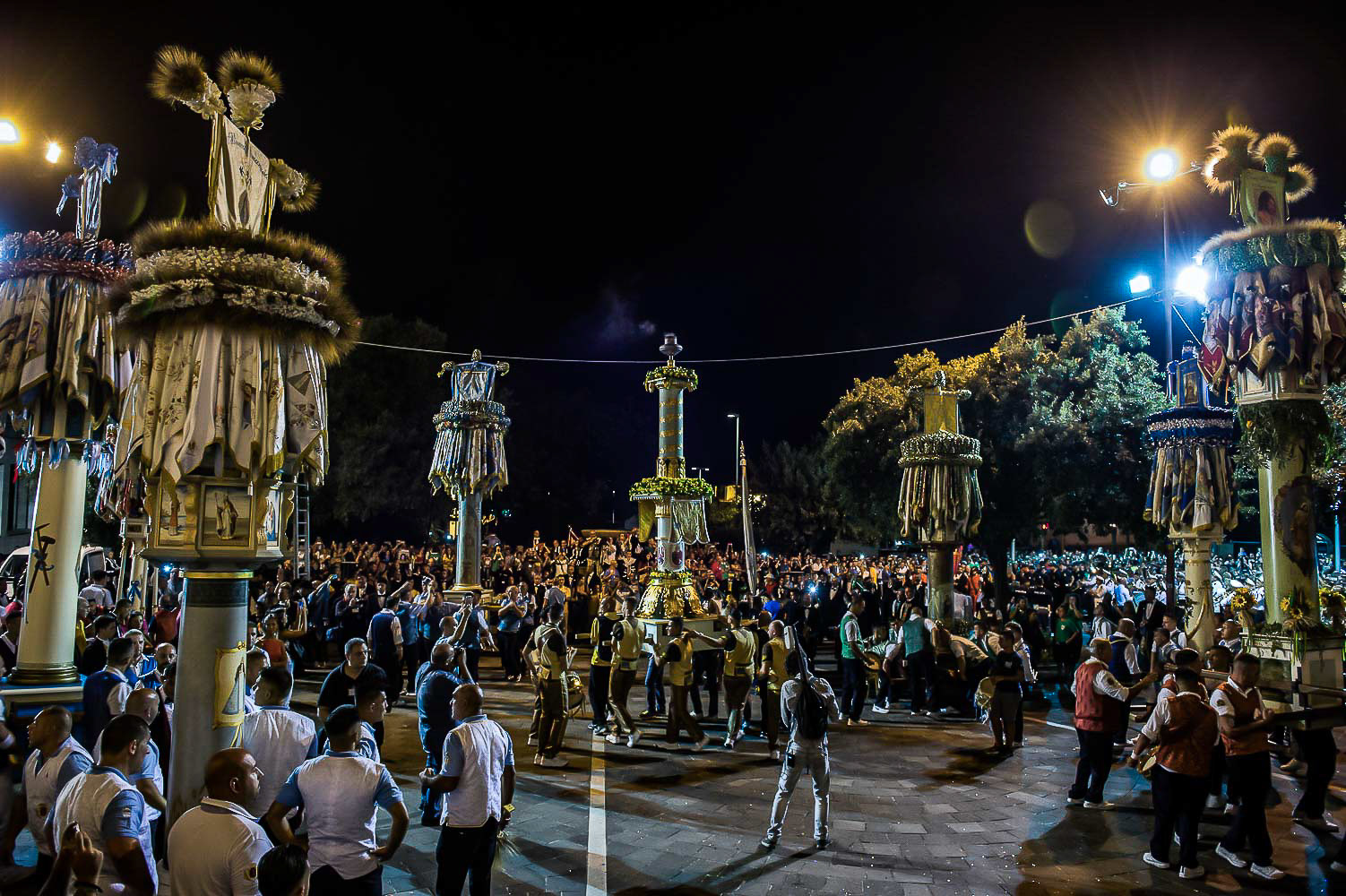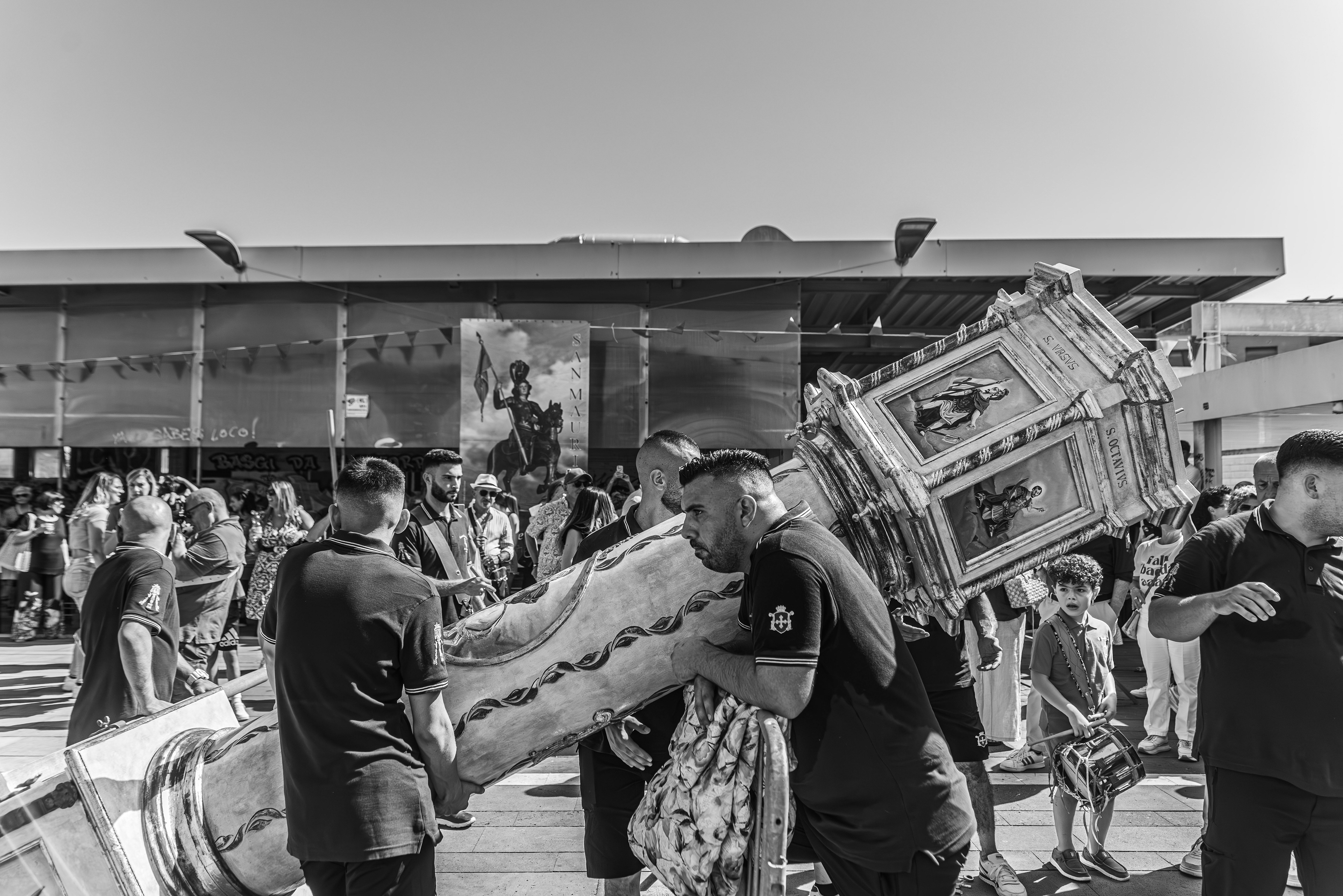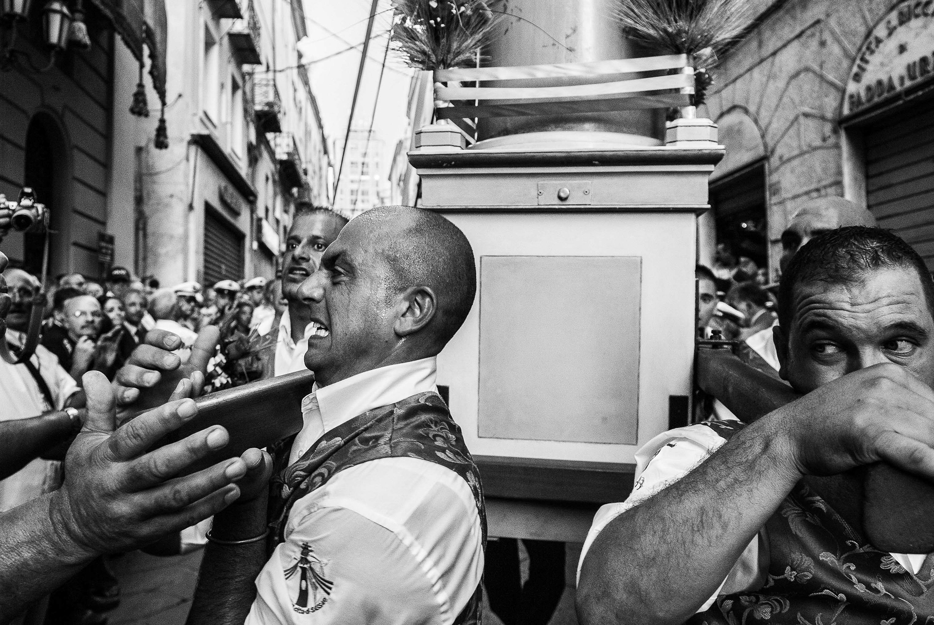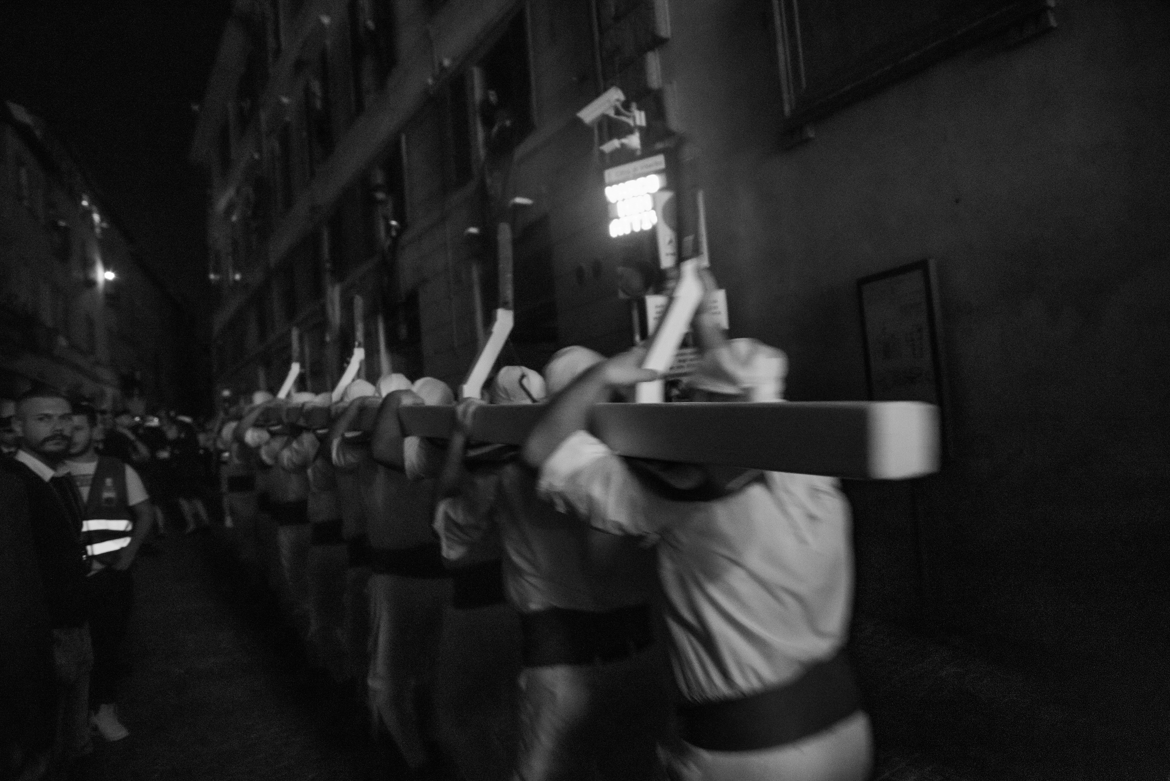 Every year on August 14th the city of Sassari celebrates the Faradda dei Candelieri, an ancient procession where large wooden structures are carried through the streets by members of the historic guilds.Rather than observing from a distance, I work inside the movement of the festival, among the porters and the crowd. My aim is to capture the physical effort, the rhythm and the sense of community that give life to this centuries-old ritual.